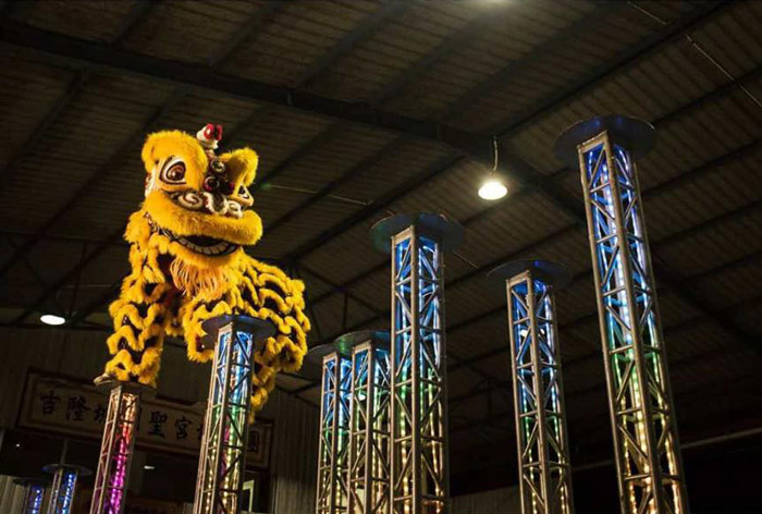• Lion Dancers on high poles - the lion dancers perform on high poles. These can be illuminated LED poles