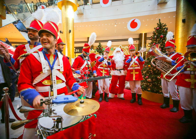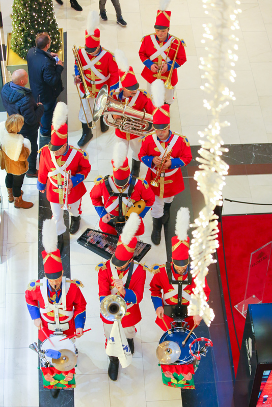 Happy to adapt both their set list and performance to different spaces, our strolling Christmas band can perform both indoors and outdoors. These roaming nutcracker soldiers’ repertoire is filled with popular Christmas songs known worldwide. Providing your event with a genuine festive atmosphere, these marching toy soldiers will spread the Christmas spirit all over the place!