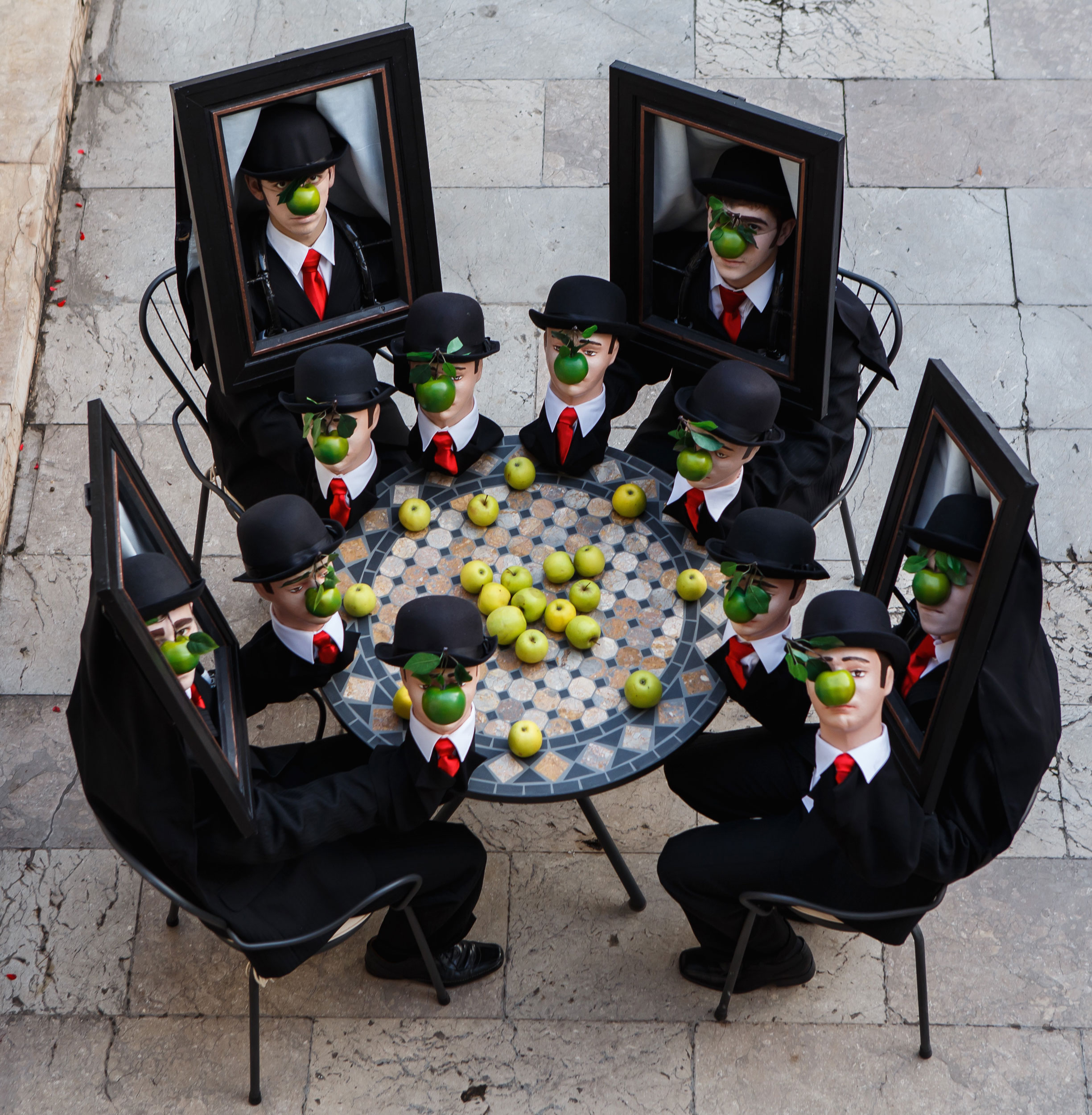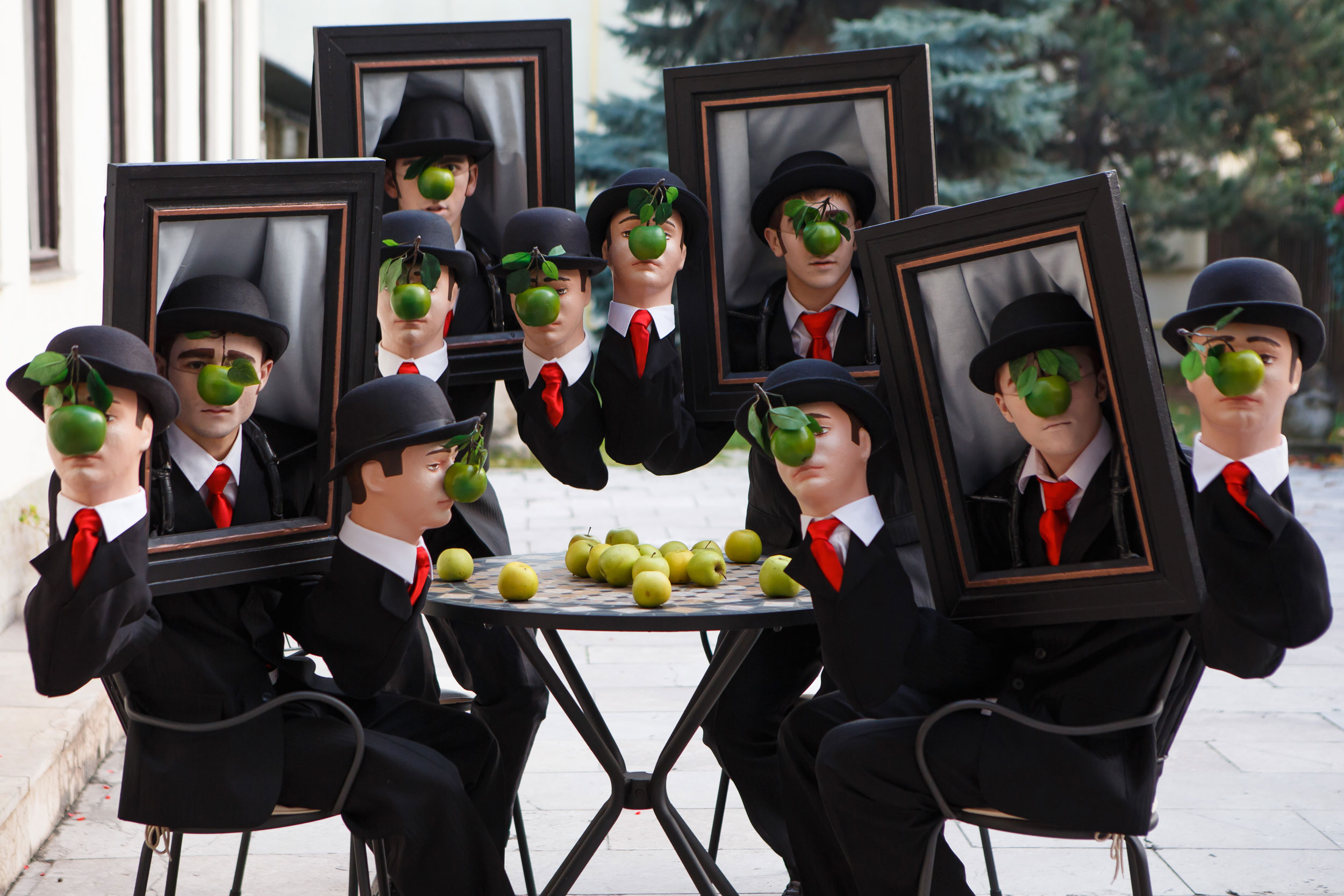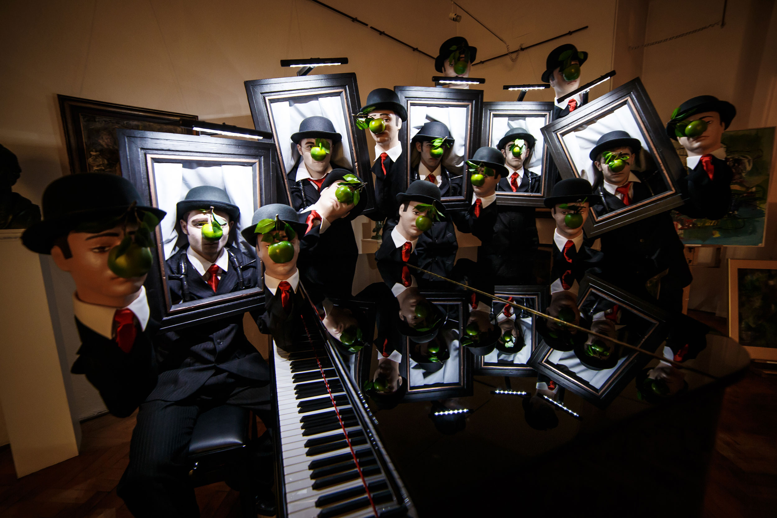 Margritte's Dancing Puppets Heads is inspired by Belgian surrealist artist, Rene Margritte and his painted self-portrait called, “Son of Man”. A performance full of art, illusion and real stunning visual spectacle… Which one is the real? Watch carefully!