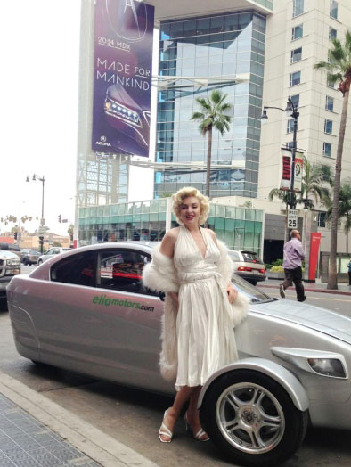 She's been a subject in several Reality TV pitches and documented by one of the original "Mad Men", Leonard Glasser (Animator, Commercial Producer, Film Writer/Director, and Sculptor). She's been included in the sell-out book "Marilyns Are A Guy's Best Friend" and honoured as an outstanding Look-alike in the photo documentary "Meet The Stars Of The Stars". On an unusual note, she's inspired 3 songs while out in the world as Marilyn, and sang "Fever" on a CD in front of a 23-piece Latin swing band. As Universal Studios' star Marilyn for press events, she was blessed to be in attendance as Marilyn when honorary mayor of Hollywood Johnny Grant accepted his star on the Walk of Fame and welcomed a 30 ft. bottle of Perrier Jouet champagne as it was lowered by helicopter to toast the new Millenium.