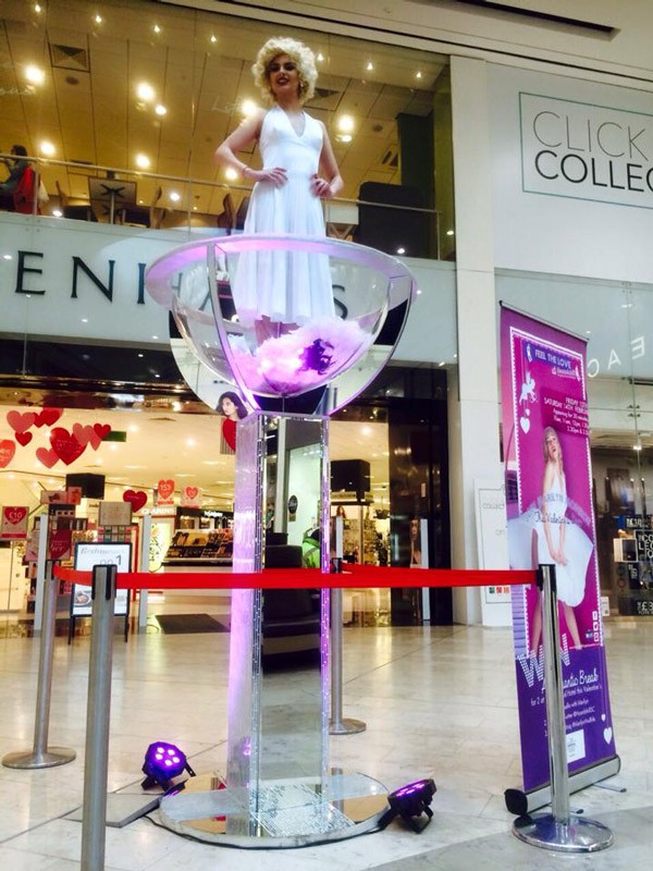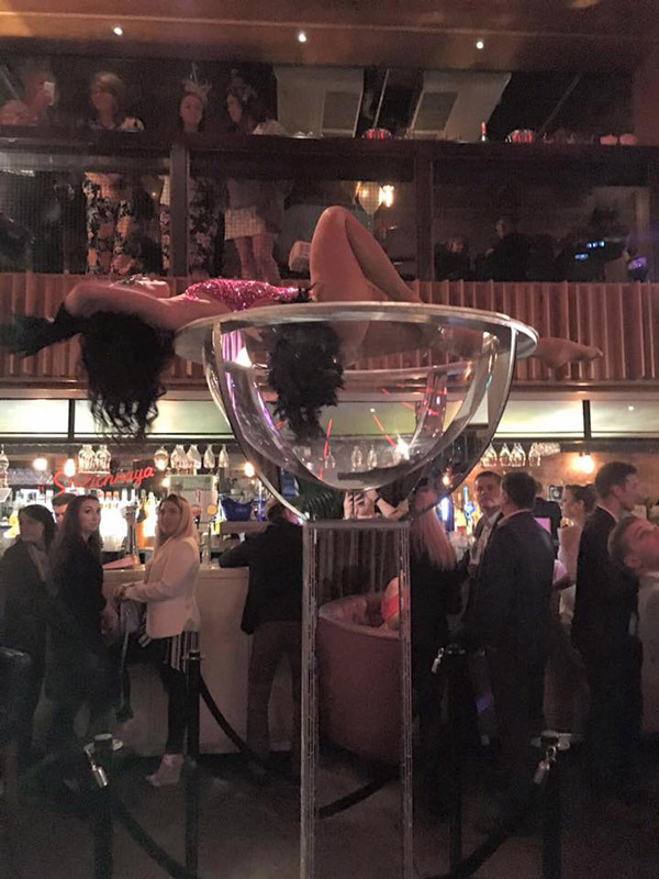 Our giant martini glass comes with a variety of performance options giving you a truly unique burlesque dance entertainment experience that includes cabaret-style performers, Marilyn Monroe impersonators, and more. Our art piece would be perfect in your event's entrance way, bar centrepiece, or just as an interesting structure to help create conversational talking points. Our burlesque performers will ensure guests are staying entertained while marvelling at the larger than life glass. This burlesque dancer in martini glass act will leave lasting impressions on guests.