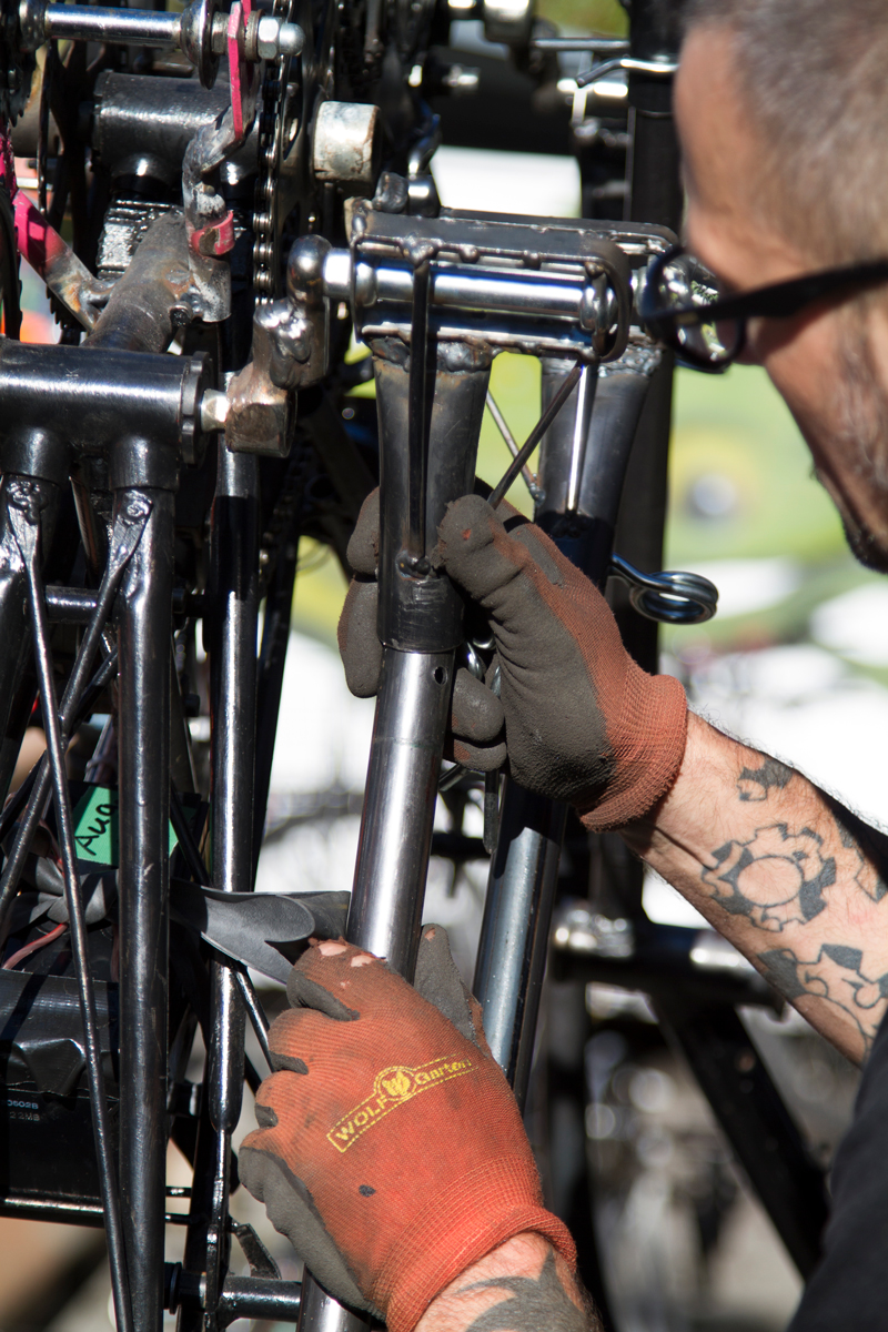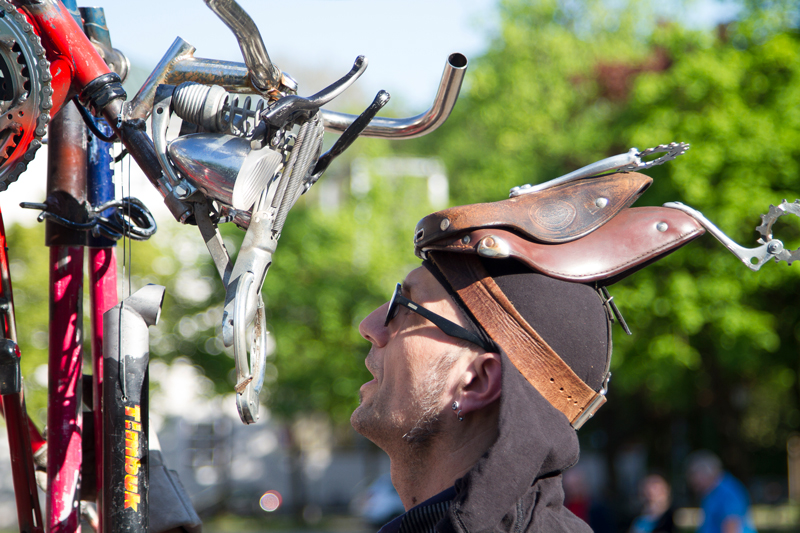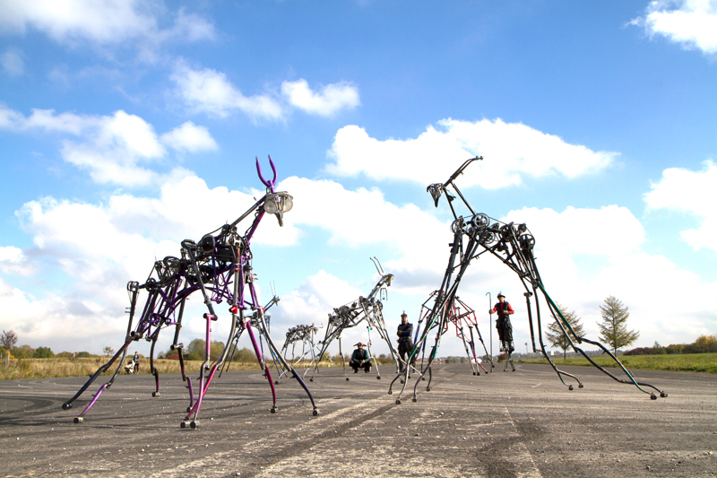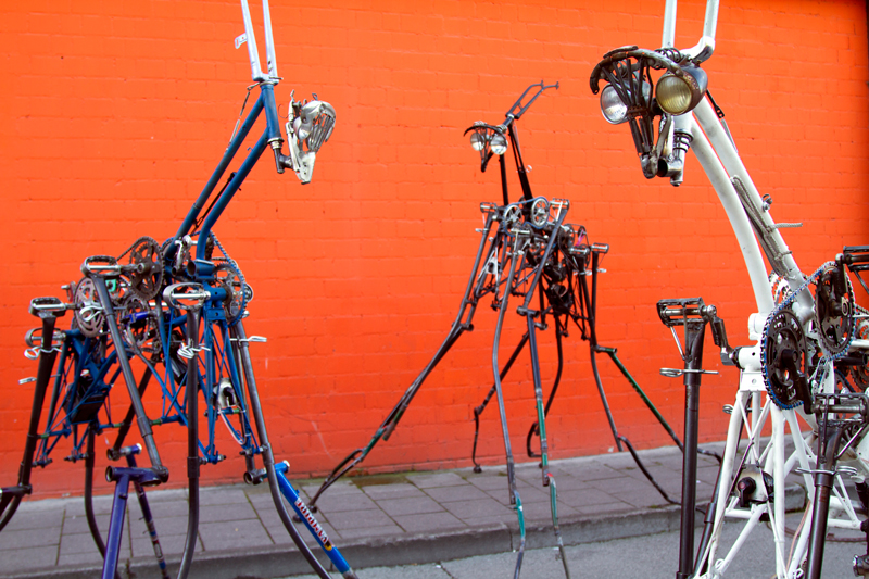 Made of scrapped bicycles, these animals are herded by their humans to fascinate and delight your guests