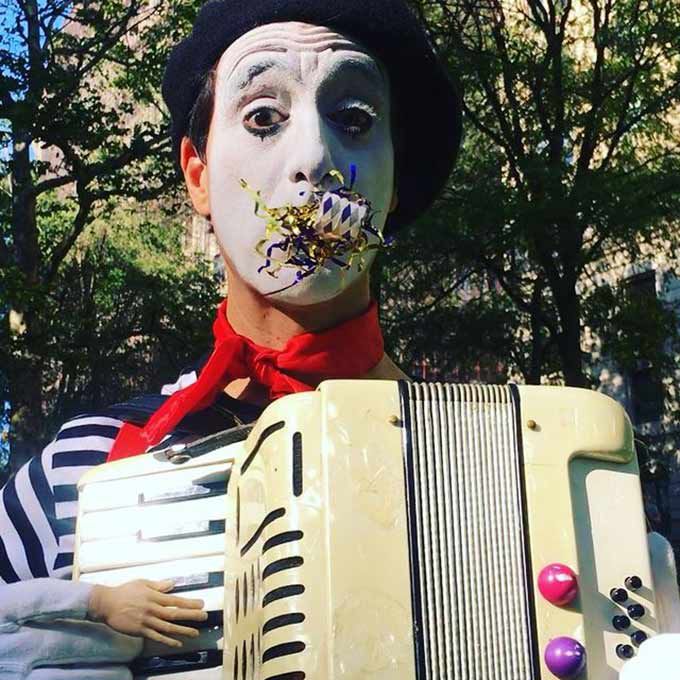Considered to be one of the top mimes in New York, he combines magic tricks with comedic delivery to ensure an engaging performance