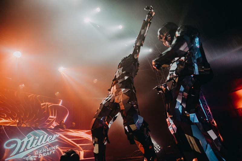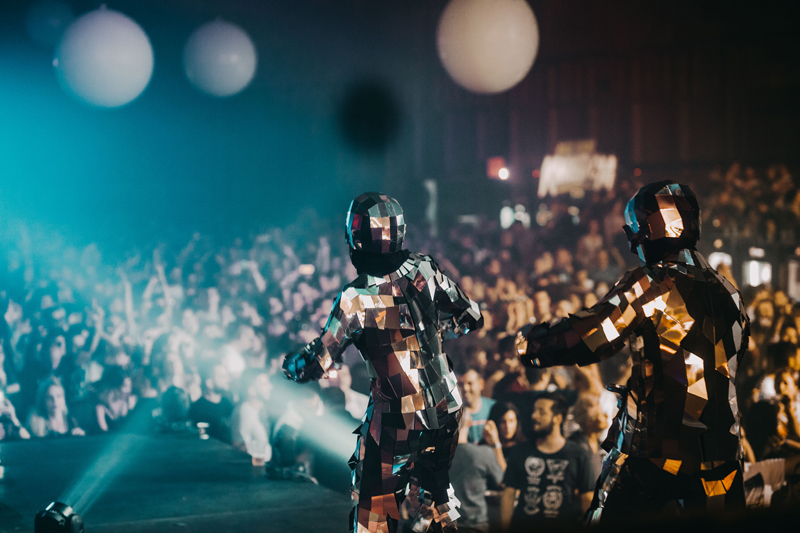 Choose from regular mirror people dancers or mirror skeleton dancers to perform a show movement, light, colour, and magic