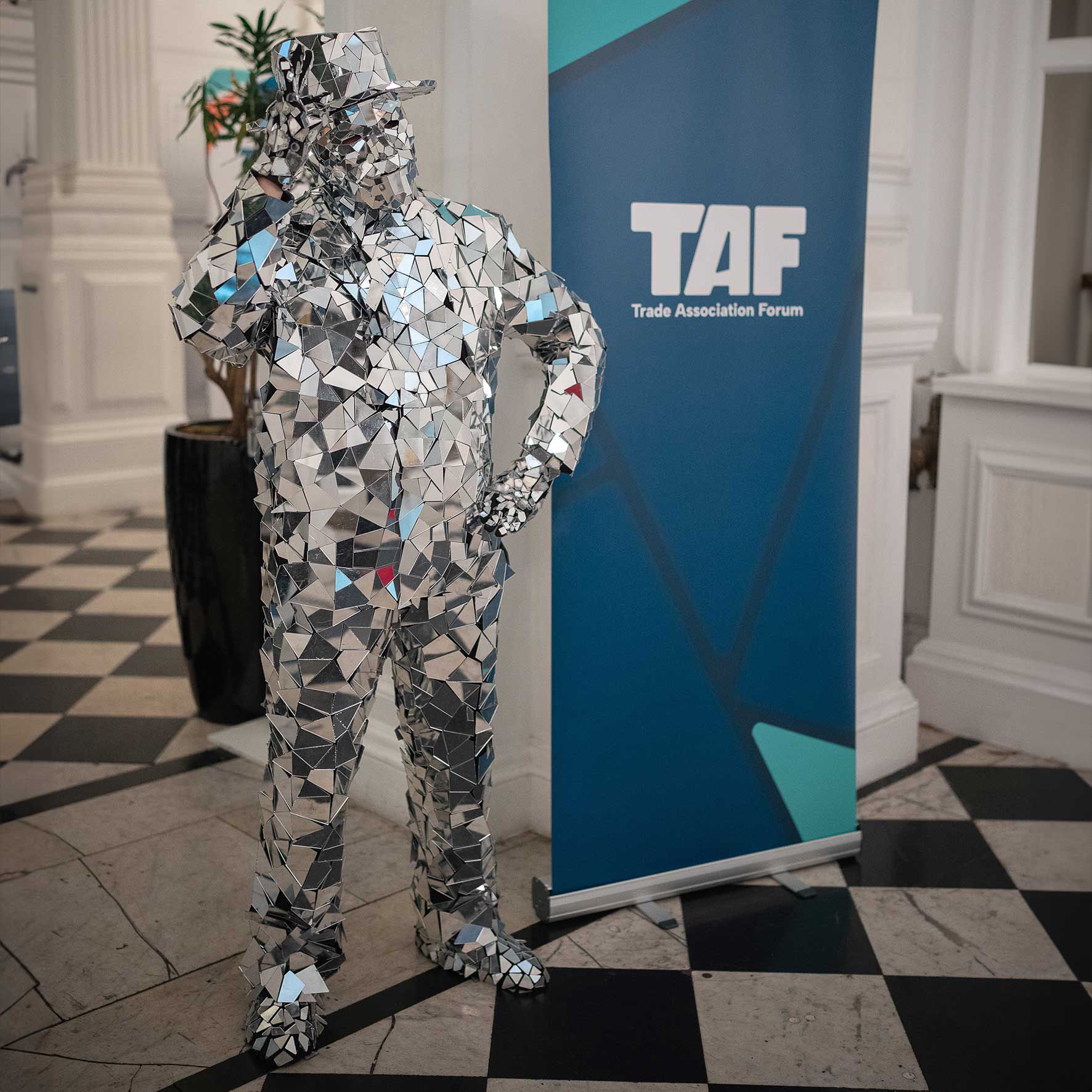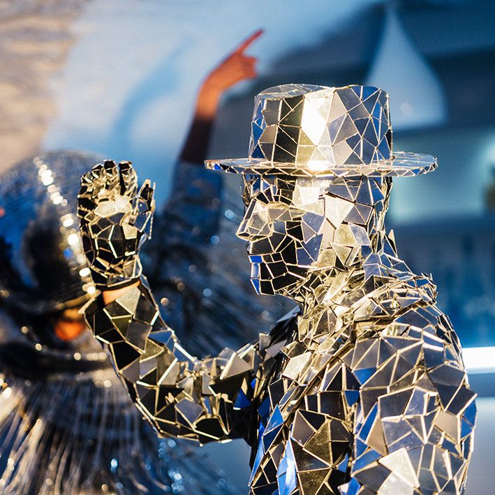 Boasting mesmerising mirrored costumes, our walkabout characters are the perfect way to infuse your event with a party atmosphere