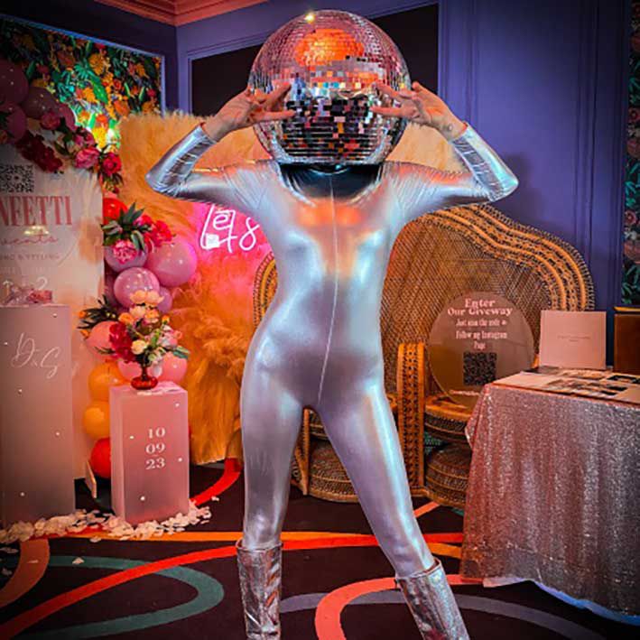 Striking and sassy our Mix & Mingle Mirror Ball Heads are an eye-catching option for walkabout entertainment