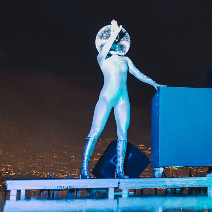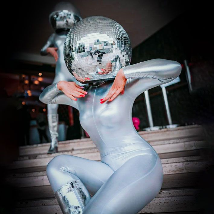 Ideal socially distanced entertainment they look dramatic even at a distance and their faces are always covered by the glittery disco ball mask