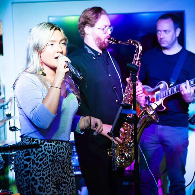 They play upbeat pop, funk and soul covers, as well as popular cover songs by Dua Lipa, Sister Sledge, Chic, Harry Styles and Michael Jackson