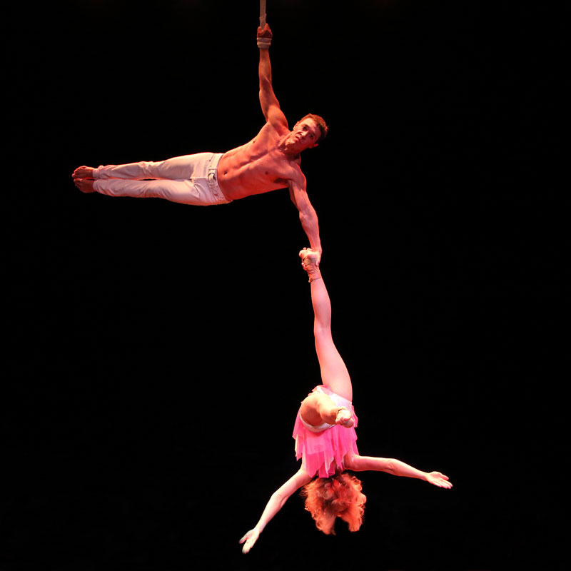 Our versatile aerial duo can perform a variety of shows. Some of the elements they can include in their impressive aerial routines include aerial hoops, aerial rings, straps and silks. Their aerial duo performance be the perfect entertainment option for after dinner experiences, theatres, cruise ships, ceremonies, shopping mall entertainment and a wider range of occasions.
