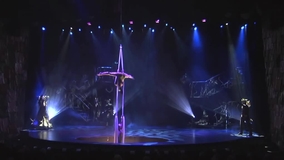 Versatile acrobat performs both aerial and ground acrobatic routines and also hand to hand balance acts