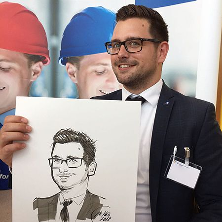 One of the finest caricaturists in Germany, he combines awesome artistic skills with a friendly, professional persona. This caricaturist quickly sees something special in every face with drawings usually ready within five minutes. His hilarious caricatures are mixed with the perfect blend of exaggeration and spot on likenesses, sure to go down a treat with guests of all ages.