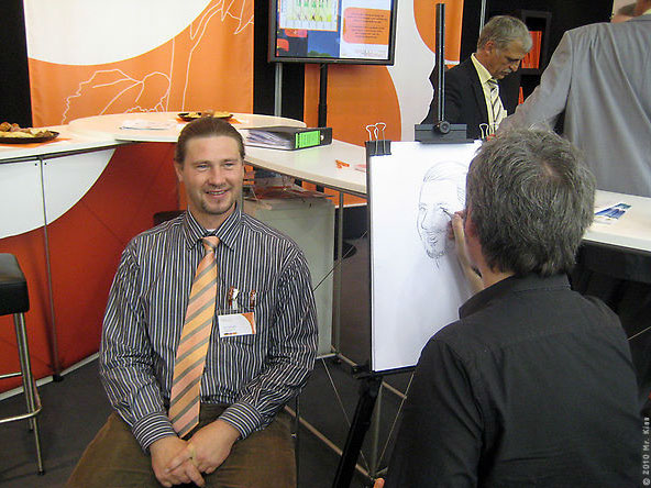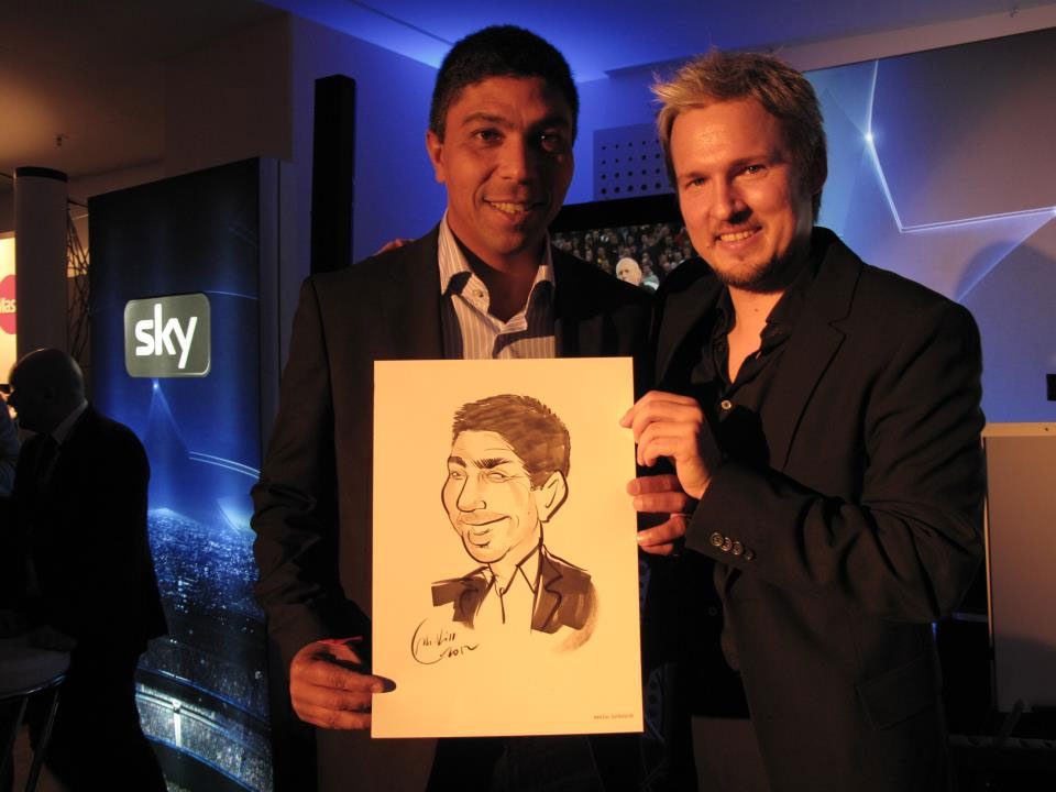 This caricaturist has worked for many international companies including Adidas, Microsoft, Siemens and the UEFA Champions League. At corporate events and exhibitions a printed logo of your company and your product can be included in the drawing.