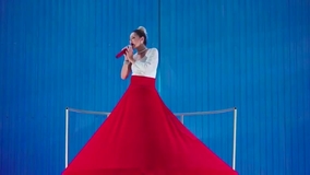 The wonderful Musical Birdcage Acrobat Show begins with our incredible Italian singer who is wearing an enormous luxurious red skirt that covers the entire cage. As she sings, she reveals the giant gold cage beneath her and your guests will be astonished to see our multi-skilled aerialist and contortionist, elegantly swaying on a hoop inside. As the music and acrobat show continues, the two world-class performers interact more and more with each other. Eventually, they switch positions so the singer is inside the cage and the contortionist performs her incredible hand balancing act on top of the gold cage.