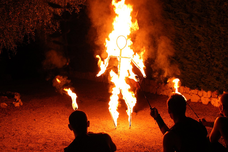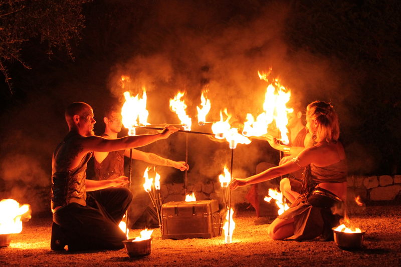 Performed by four fire dancers, this mysterious fire show tells the story of the birth of the sun