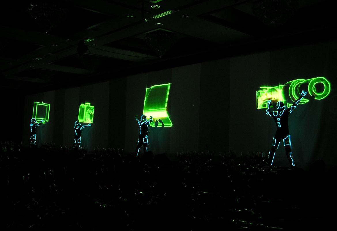 This act is a multimedia and dance company, that specialises in the creation of shows for the corporate world. They create a unique performance for every client, based around their theme, staging and projection requirements. This can range from completely redeveloped costumes, graphics, choreography and music, to a simple logo or slogan insertion to an existing show.