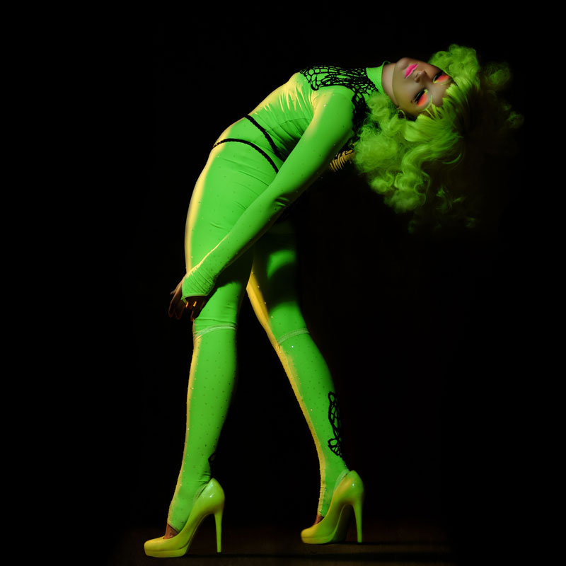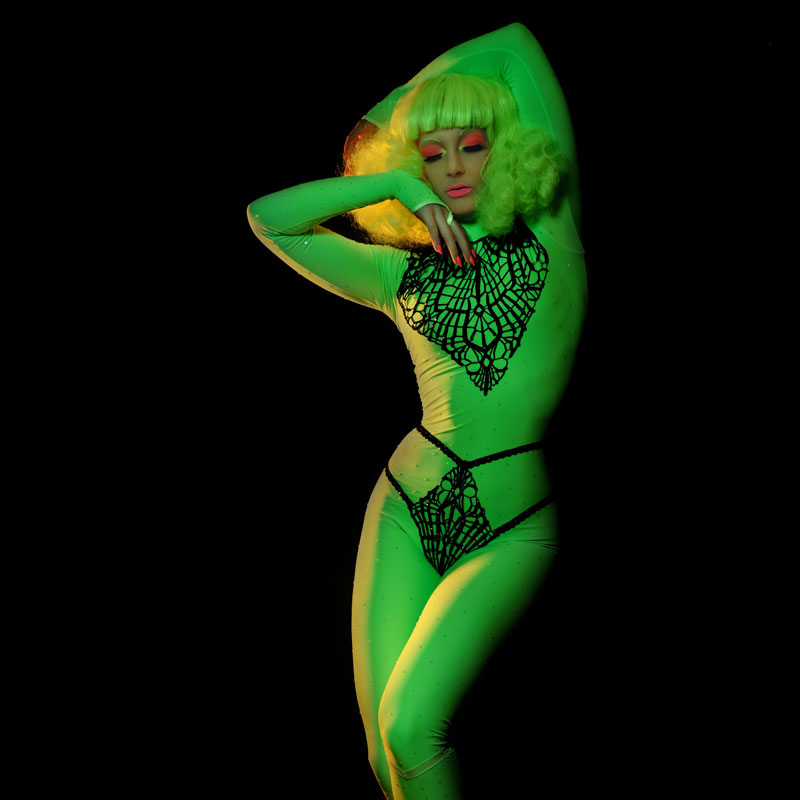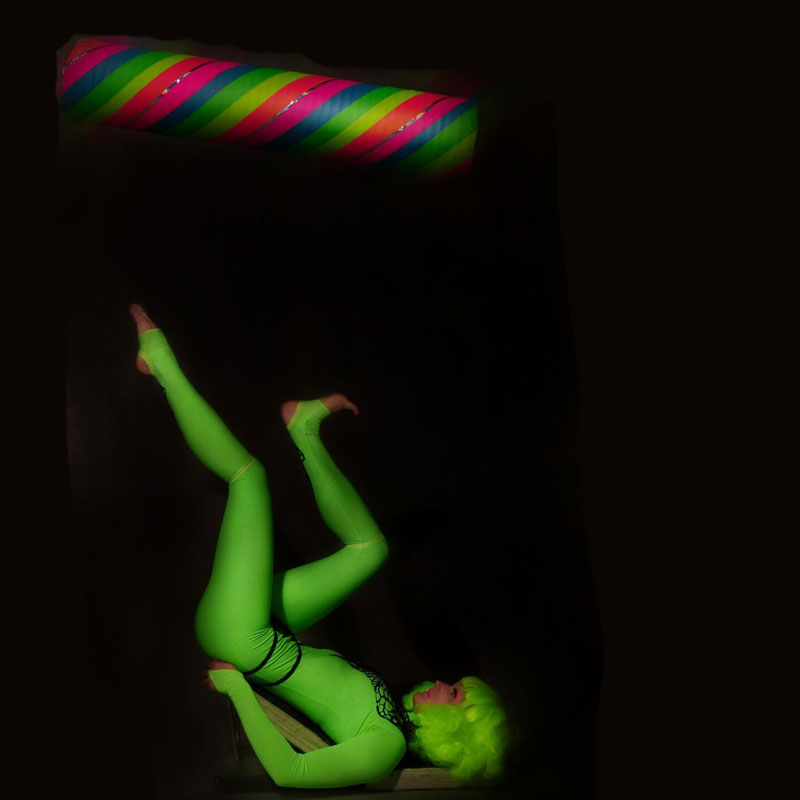 Having made her name internationally our female circus performer took the london cabaret scene by storm with a signature act “A Tribute To Marlene”. Now through high demand, she has expanded her repertoire even further with another a new neon style performance.