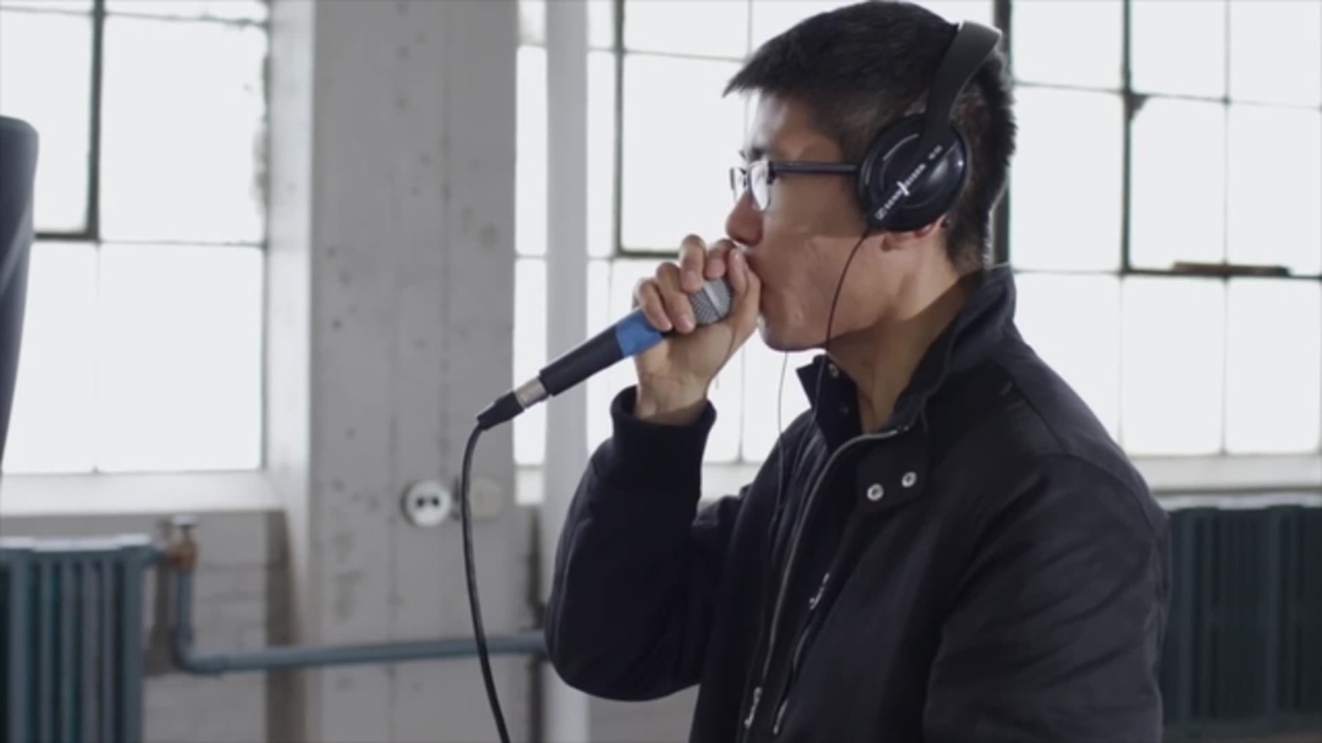 Our beatboxer uses his mouth to create high-energy, bass-thumping music through the intricate process of recording and layering of vocal sounds