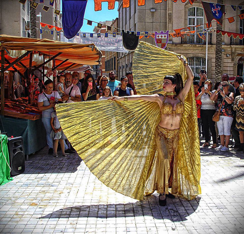 Spanish belly dancer regularly performs at street celebrations, weddings, themed parties, festivals, etc.