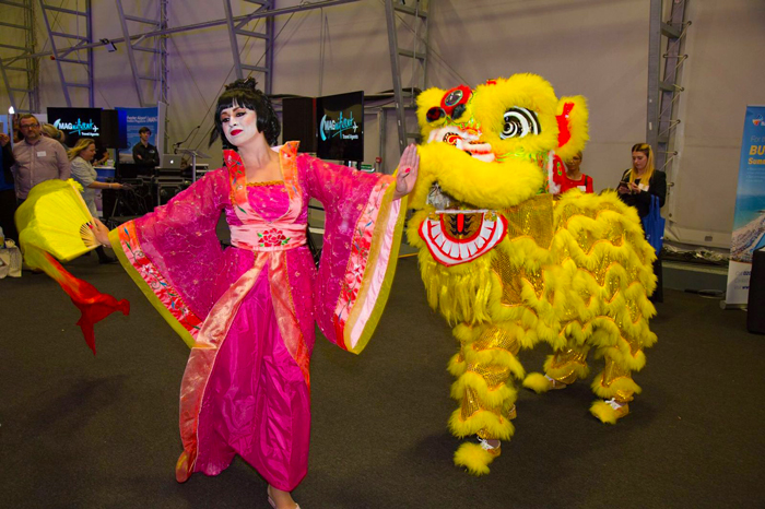The roaming Chinese lion and Oriental themed dancer are ideal for Chinese themed events and parties, parades, religious occasions, opening events, special celebrations or wedding ceremonies. Their interactive Chinese entertainment ranges from roaming to meet and greet and welcoming guests.