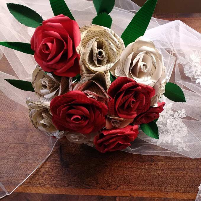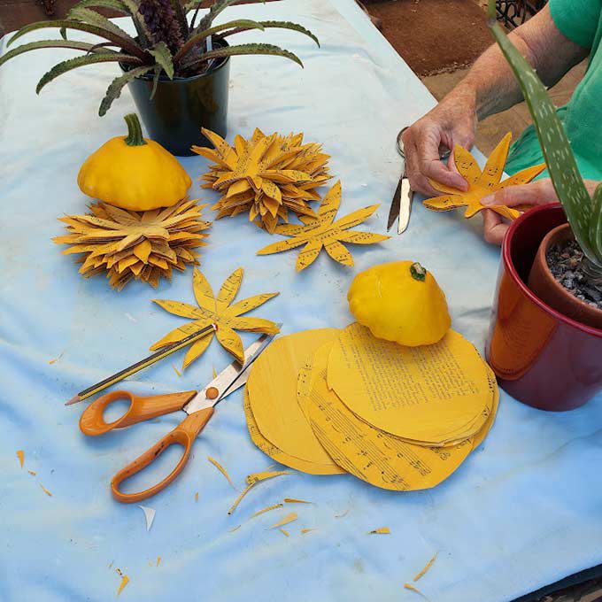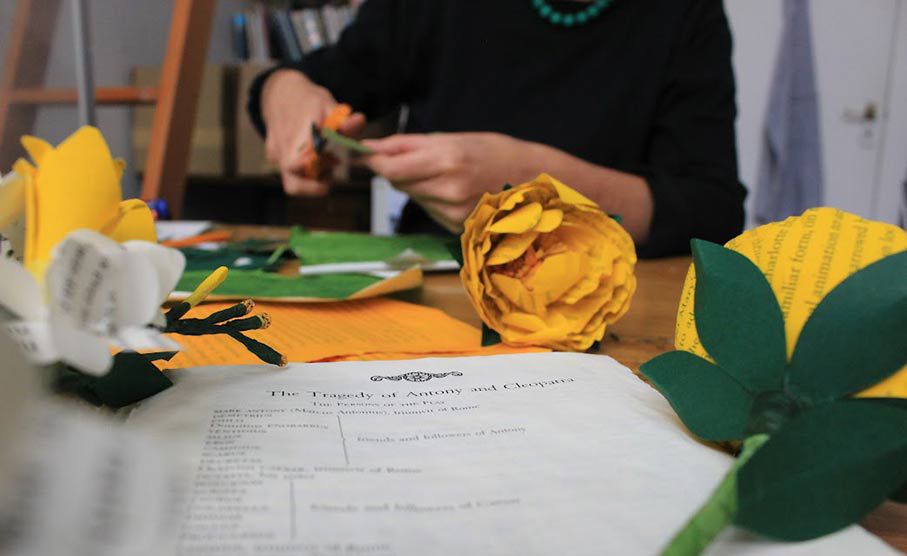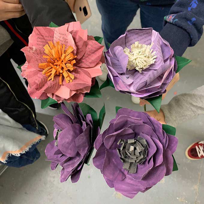 Our artists show guests how to make handmade paper flower displays and bouquets, from recycled materials, including books, maps and sheet music