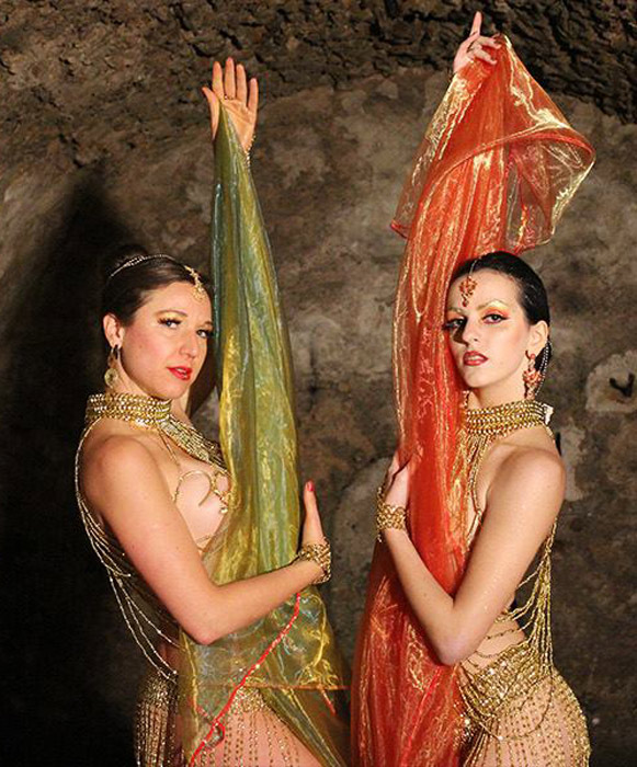 The Paris Burlesque Duo have three pre-choreographed themed burlesque shows each with wonderful costumes, different routines and tailored to different event types. The first is an award-winning Egyptian themed fire burlesque show for which they can use light props instead of fire. The second is a French classic kinky show with a hat and cane dance. And finally, they offer a comedy themed burlesque show with a chair dance and bottom tassels that they twirl for the audience.