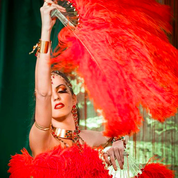 As well as the classic and fire burlesque show, our Paris Burlesque Duo can be booked for roaming entertainment or to perform along to live bands or DJs. For slightly more sensitive audiences, the burlesque show can be booked to not include any of the striptease elements.