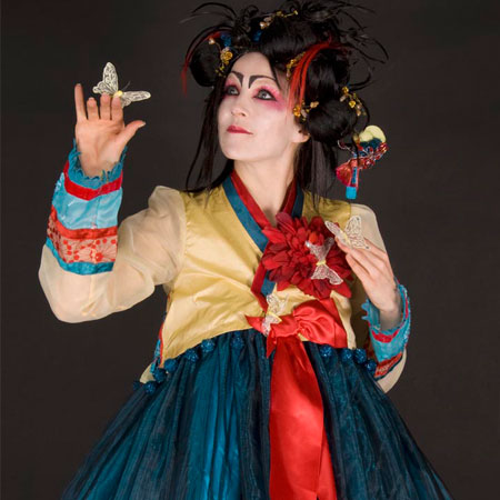 - Korean Geishas: A beautiful unique stilt act, our geisha lady never fails to delight with her colourful eye make up and flowing skirt