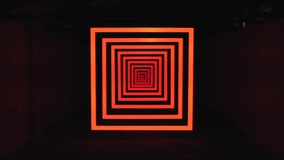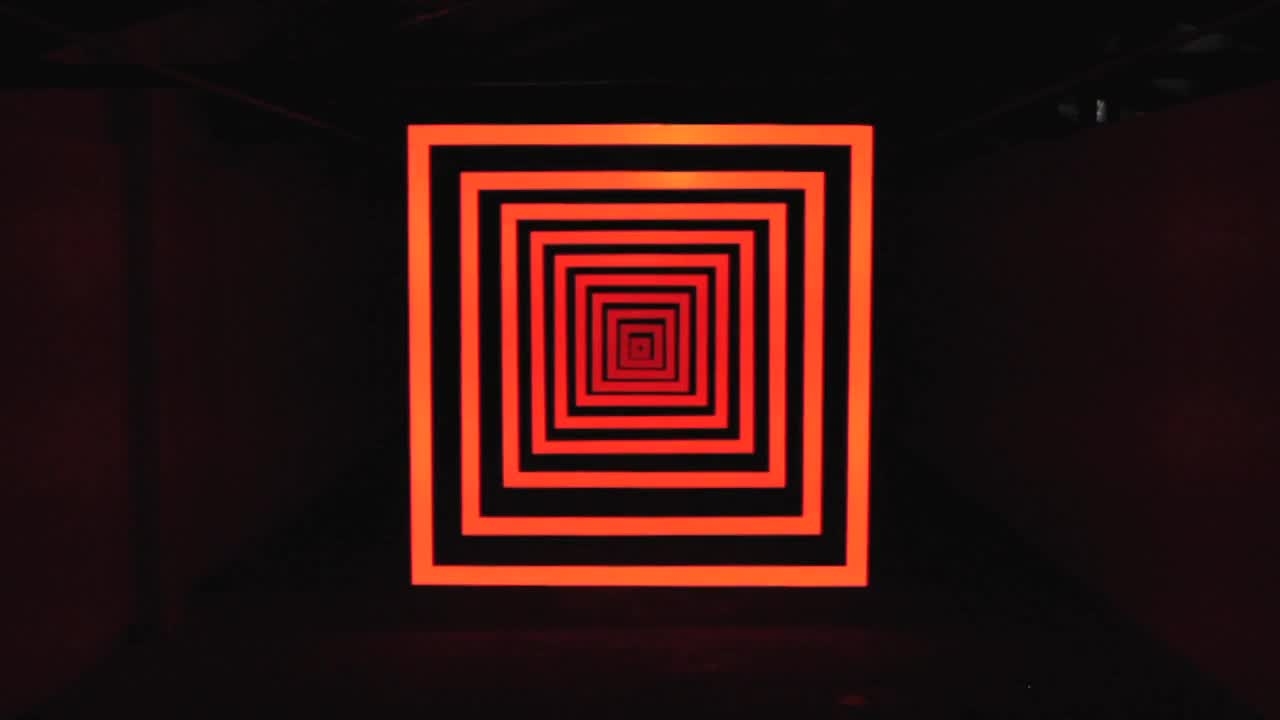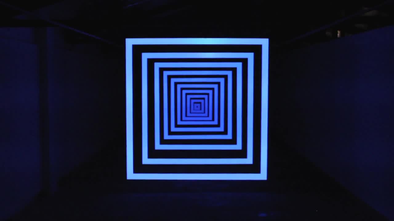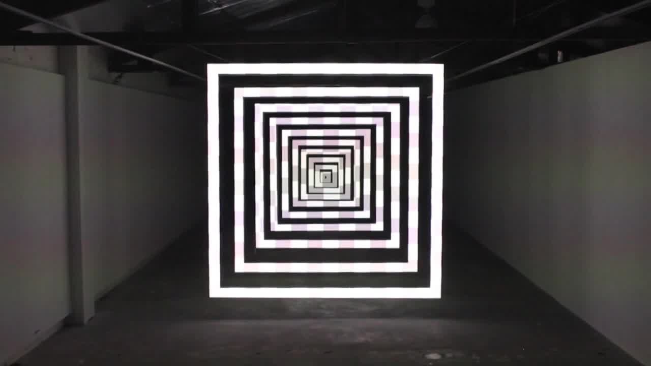 Perspective Shift is a sound and video sculpture consisting of ten suspended concentric frames illuminated by sequenced geometric animations