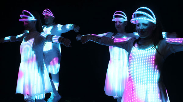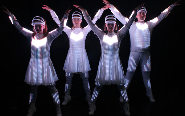 A completely customisable act that uses wearable tech, this brilliant group are kitted out in costumes that display moving images across their bodies, meaning that as they dance, video sequences are played in order to create a mesmerising effect.