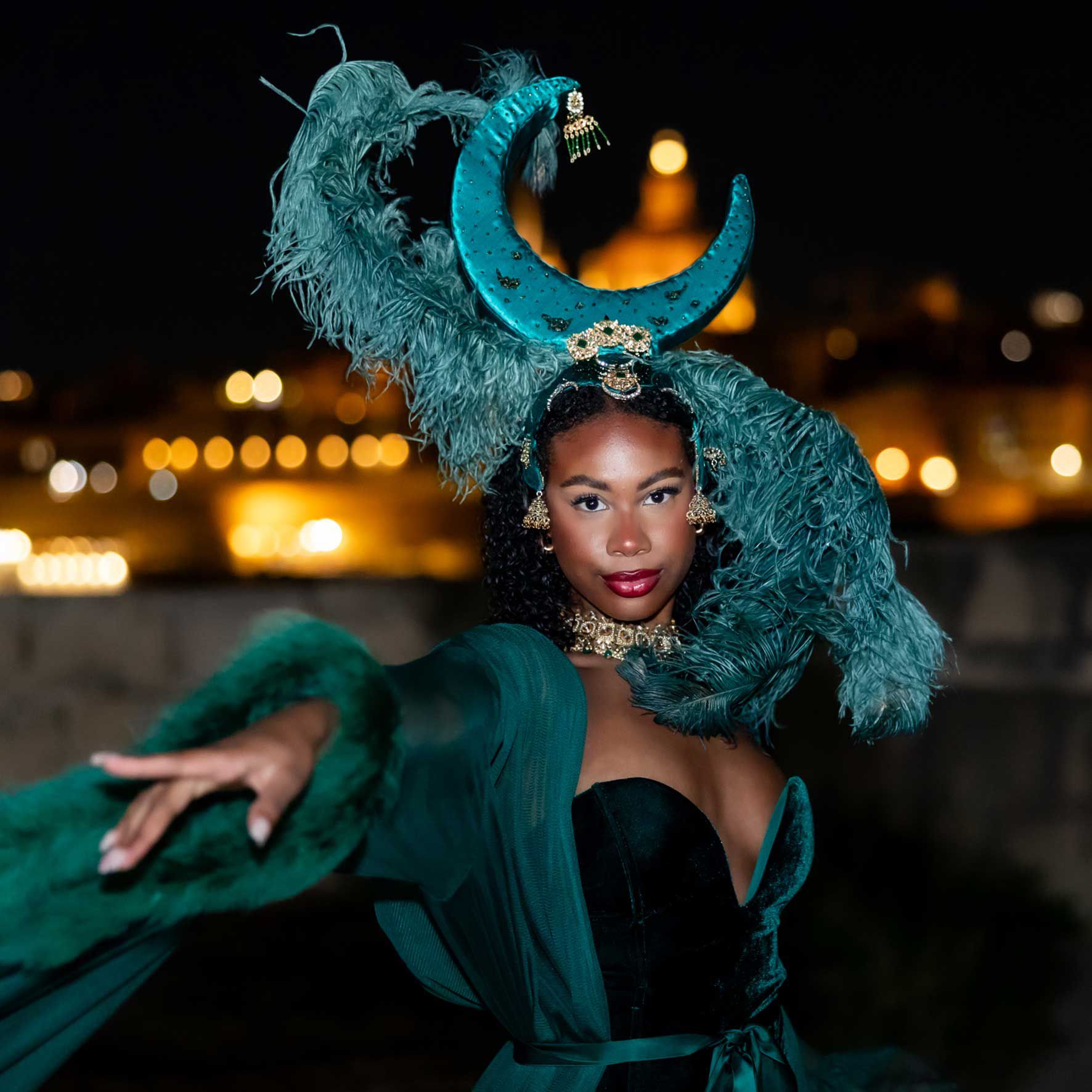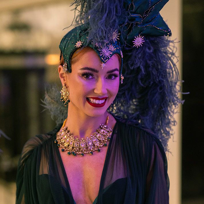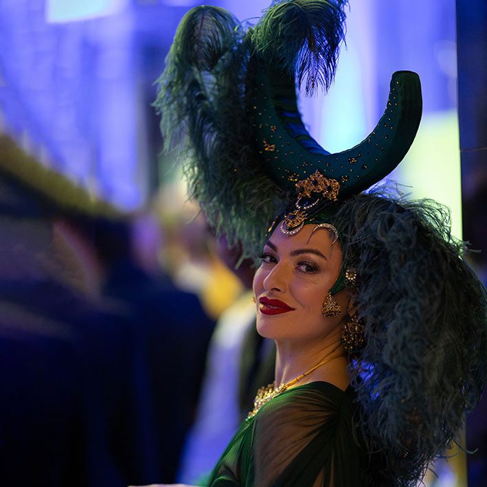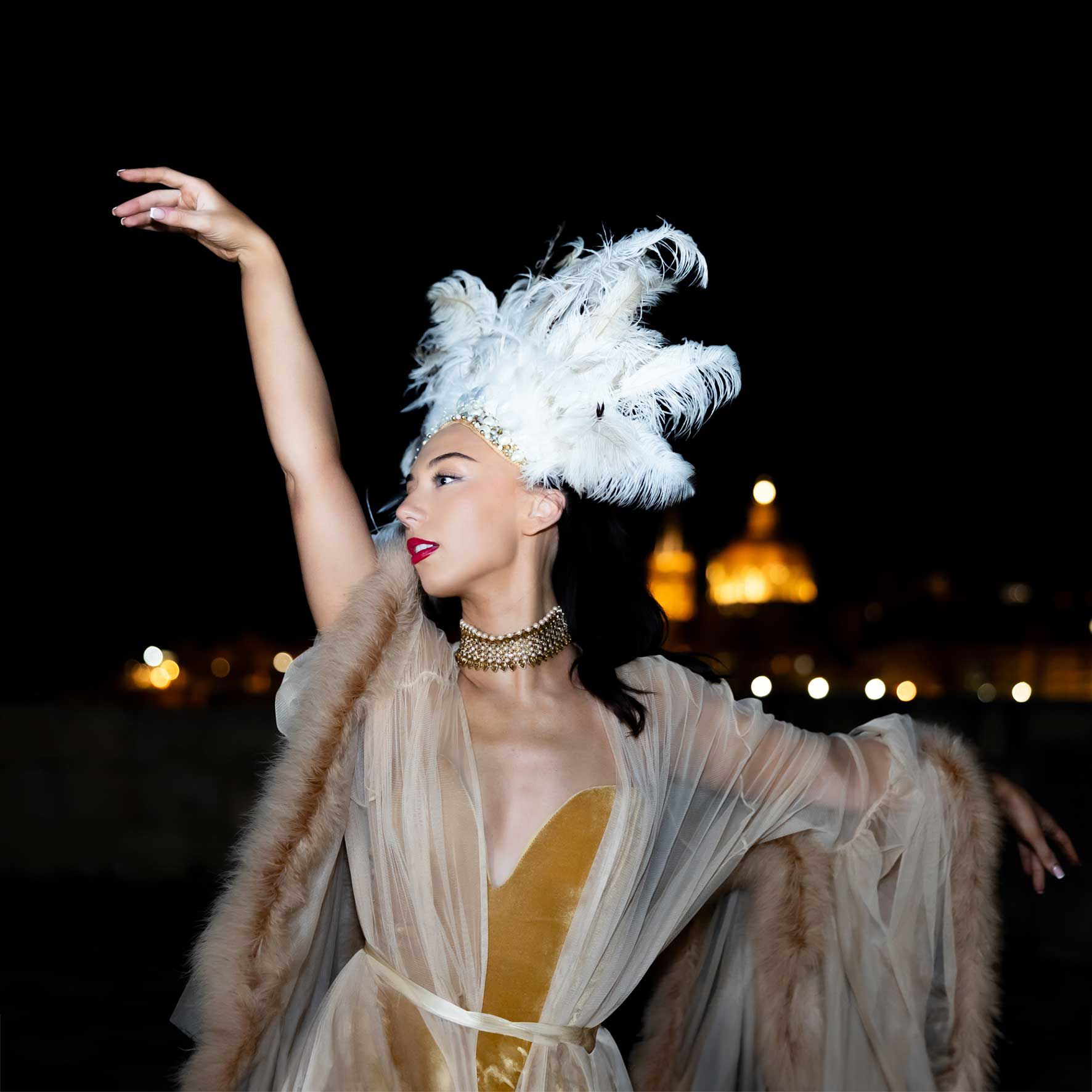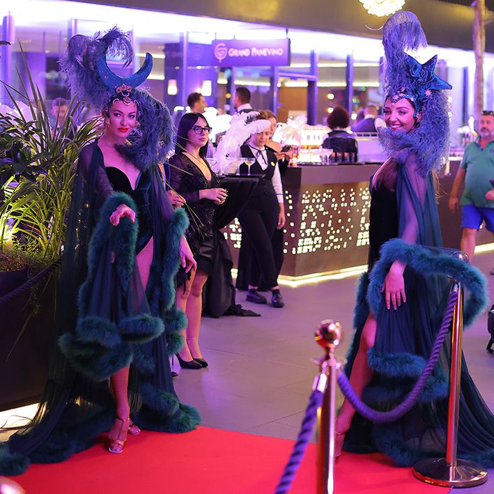 Dressed in elegant, high-end costumes featuring feathered headdresses and glamorous fluffy gowns, our girls make a fantastic photo opportunity