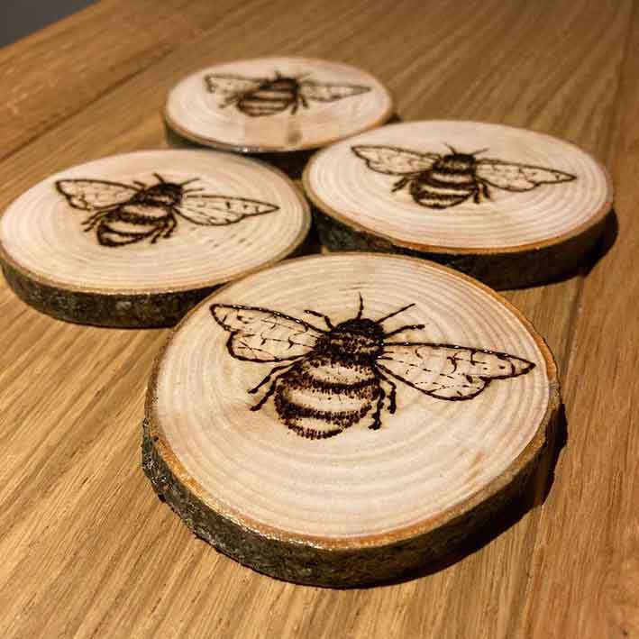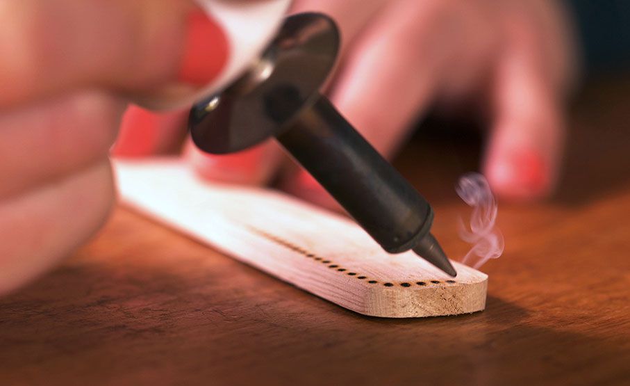 An unusual and highly engaging hands-on workshop where guests get to try their hand at pyrography, the art of burning wood to create motifs