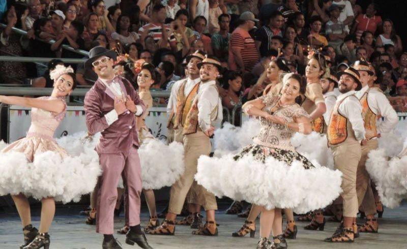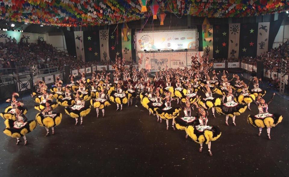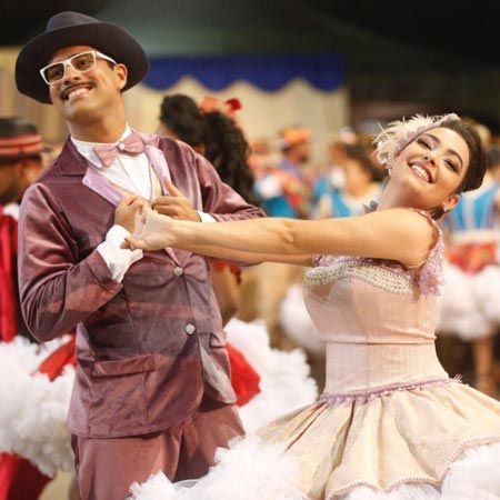 Led by an announcer that calls out the steps, this traditional Brazilian square dance is performed by couples who dress as caipiras