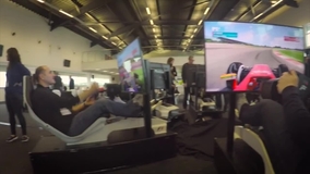 The racing car simulator can be booked as a full or half car can either have one or three 42" screens each and a spectator screen for the audience to see how the participants are getting along.