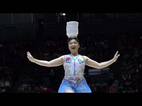 With her unique bowl-flipping trick, the Red Panda, a professional acrobat, is one of the most popular NBA Half Time entertainment shows