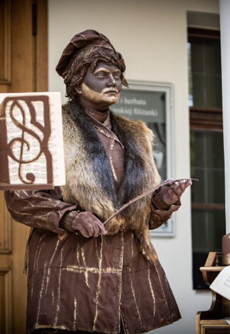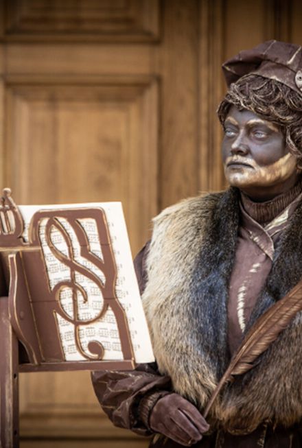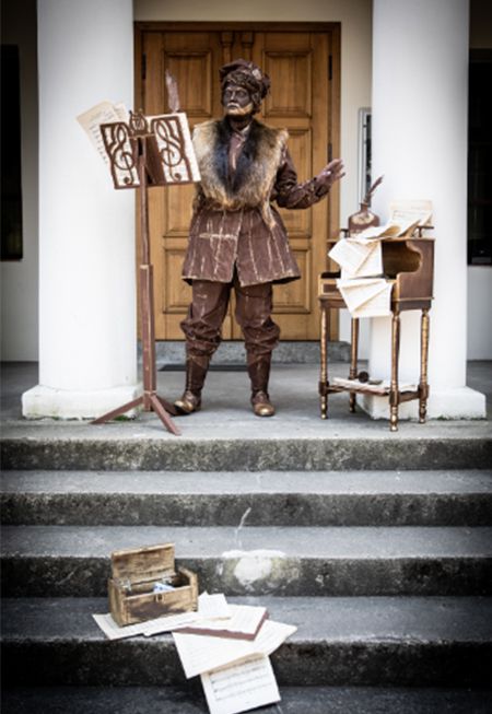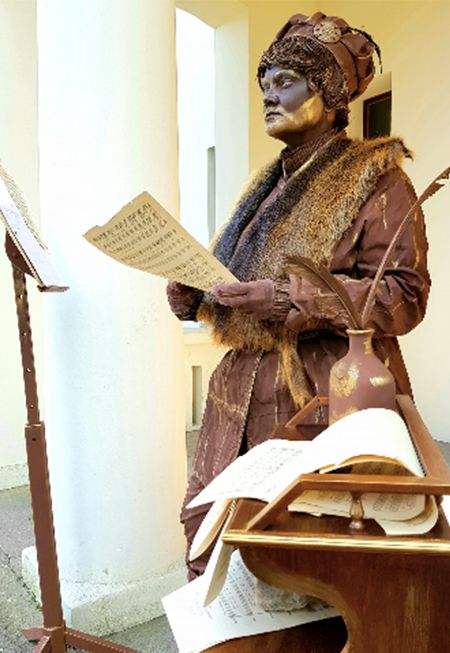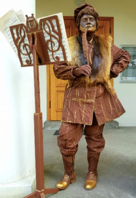 This distinguished Living Statue Composer, has been transported all the way from the 17th century