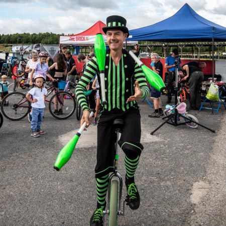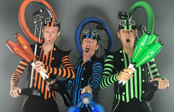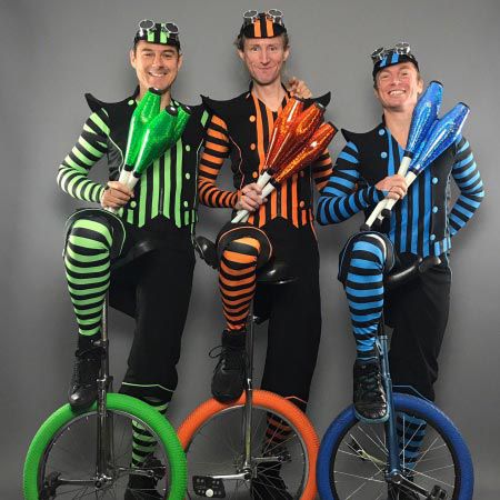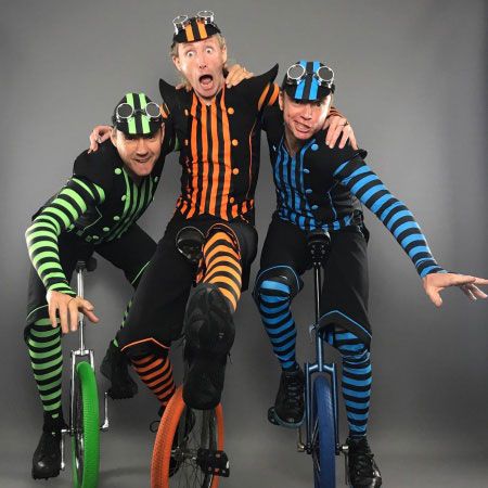 Their versatile circus performances incorporate modern clowning, synchronised unicycle routines, close-up magic, balloon modelling and juggling