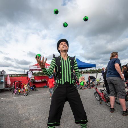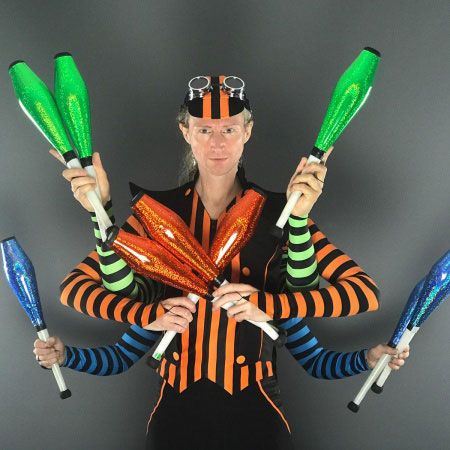 Our walkabout comedy artists can adjust their acts with different colourful costumes and LED juggling clubs, to give your event a unique experience
