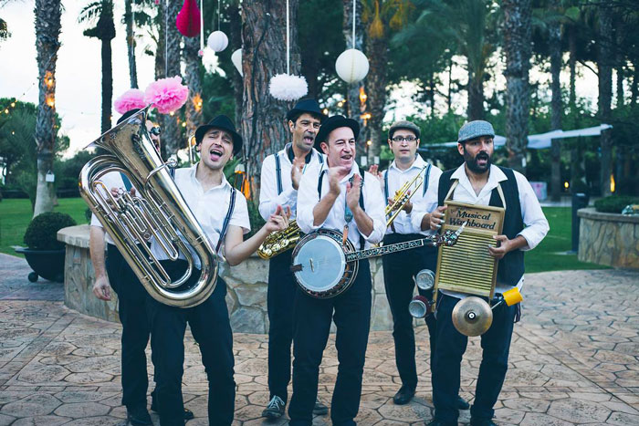 Contact us directly if you would like to book this brilliant Dixieland marching band for your event or looking for the best walkabout wedding band in Spain.