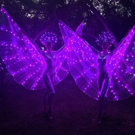 Dressed in eye-catching costumes with stunning iridescent wings, our walkabout performers are available with white, pink or purple LED lights