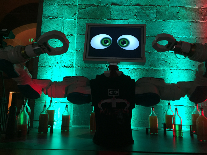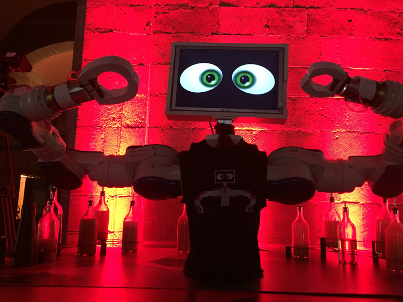 According to our specialists in robotics, ‘everything a human waiter can do, this robot bartender can do’. Specialised in developing creative and friendly humanoid robots, our team of experts are specialists in robotic technology for events. This multi-award winning team is based in Seville and also works in Madrid, Barcelona, London and Dubai. Our team’s humanoid robot waiter and other robots can be booked for events all over the world.