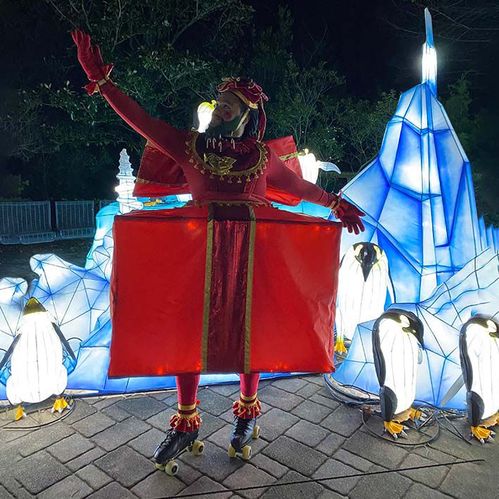 This skilled performer brings a unique and dynamic element to the festivities, gliding gracefully on roller skates while embodying the spirit of the season.