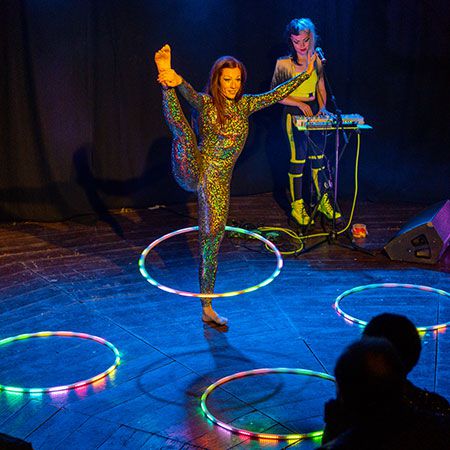 The female hula hoop artist offers her performances for everything from stage shows to a walkabout mix and mingle. Using a range of multiple hoops, fire hoops and LED hula hoops, she is able to provide unique entertainment especially tailored to your event. The LED hula hoops are fantastic for indoor performances and nightclub appearances.