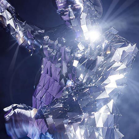 These captivating dancers are intriguing with their specially designed suits that reflect stage lighting to give the illusion of a galaxy of stars