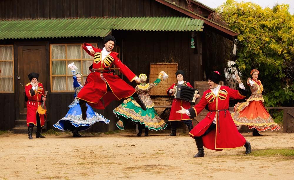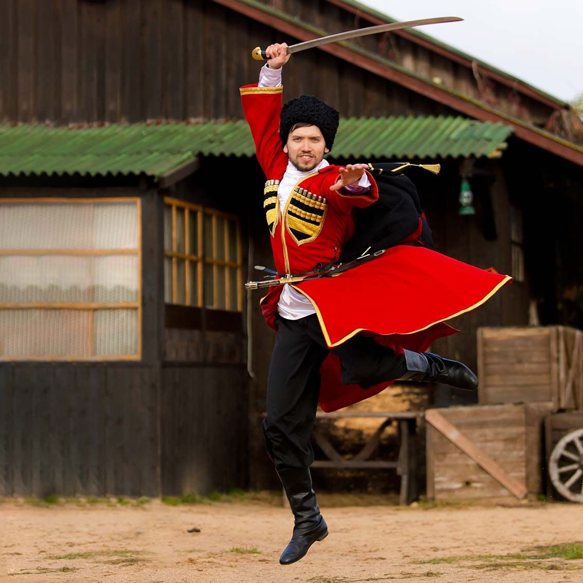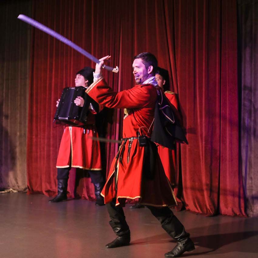 Accompanied by live music, these dynamic displays of traditional Russian dance use sabres and whips