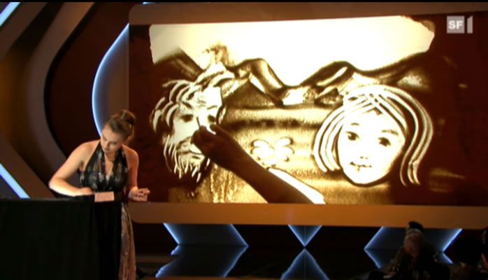 This Germany based sand animator performs breathtaking shows using sand and sound to illustrate a story on a projected screen, creating an amazing and memorable live art performance. Custom live presentations can include unique images, company logos and themes.