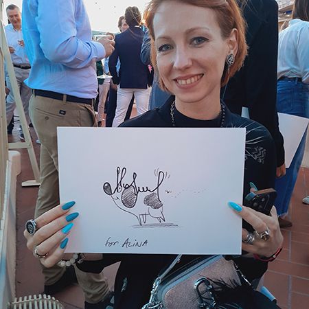 Based in Spain, our signature caricaturist is available to bring his engaging drawing experience to galas, parties and malls worldwide