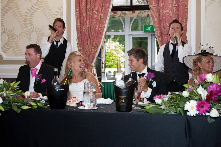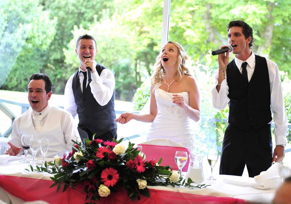 " We just wanted to say a really massive thank you for putting on such a great show at our wedding on Friday. You were the highlight of the day for everyone and made our day so memorable! Your worked tirelessly from start to finish, from working under cover as the waiters, right through your performances and the disco until the end of the evening. Amazing voices and lovely guys to deal with – the best money we spent on our whole wedding! "
