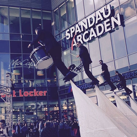 Welcome your guests to your event with our staggering sky drummers as they appear on a 16 foot steel pole whilst playing the drums! Hovering over your guests in a 35 degree angle these aerial drummers are guaranteed to capture the attention of every single person.
