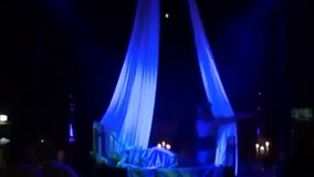" Open mouthed, the spectators witnessed in amazement the cloth acrobatics of the show. The duo performed with intoxicating sensuality, and both performers beautifully and gracefully soared above the bed. At the end, a feathery dream of white and blue floated to the ground – breathtaking! "