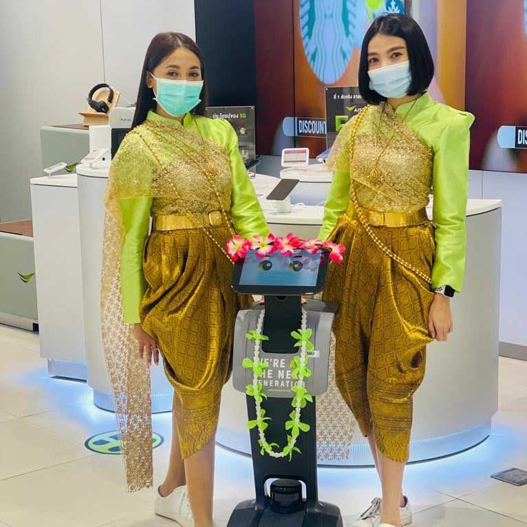 These robots can be controlled remotely to engage and greet guests and deliver items like food. They can even talk about the goods they carry